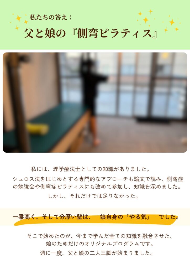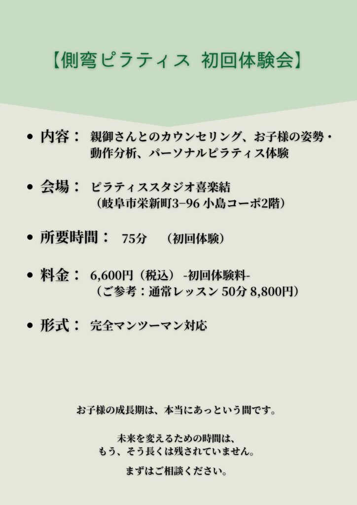 側湾症ピラティス 2025年10月14日 最終更新日時 : 2025年10月14日 喜楽結 お申し込みの際は【初回限定体験レッスン】を選択いただき、必要項目の入力の上「備考欄」に『側弯ピラティス』とご記入ください。 \ 最新情報をチェック /